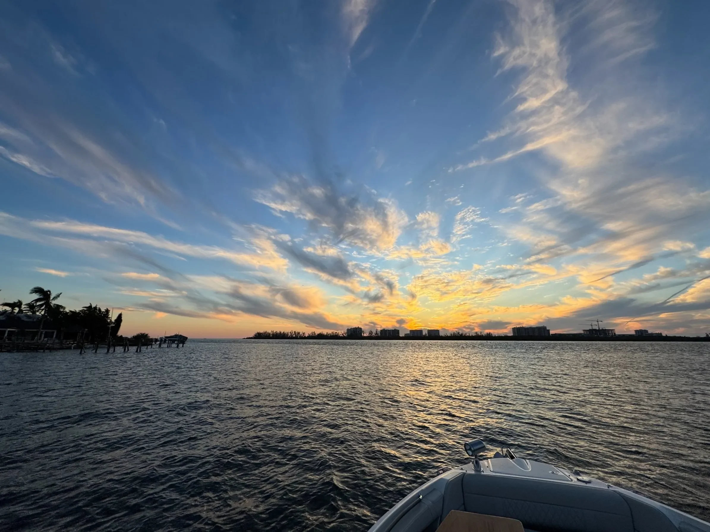 The heart of our sunset charter experience, Sarasota offers a perfect blend of coastal sophistication and natural beauty. Cruise past Siesta Key, Bird Key, and Lido Beach as the sun casts a golden glow across Sarasota Bay. Whether you're toasting with cocktails or planning a dinner drop-off, this route remains a timeless favorite.