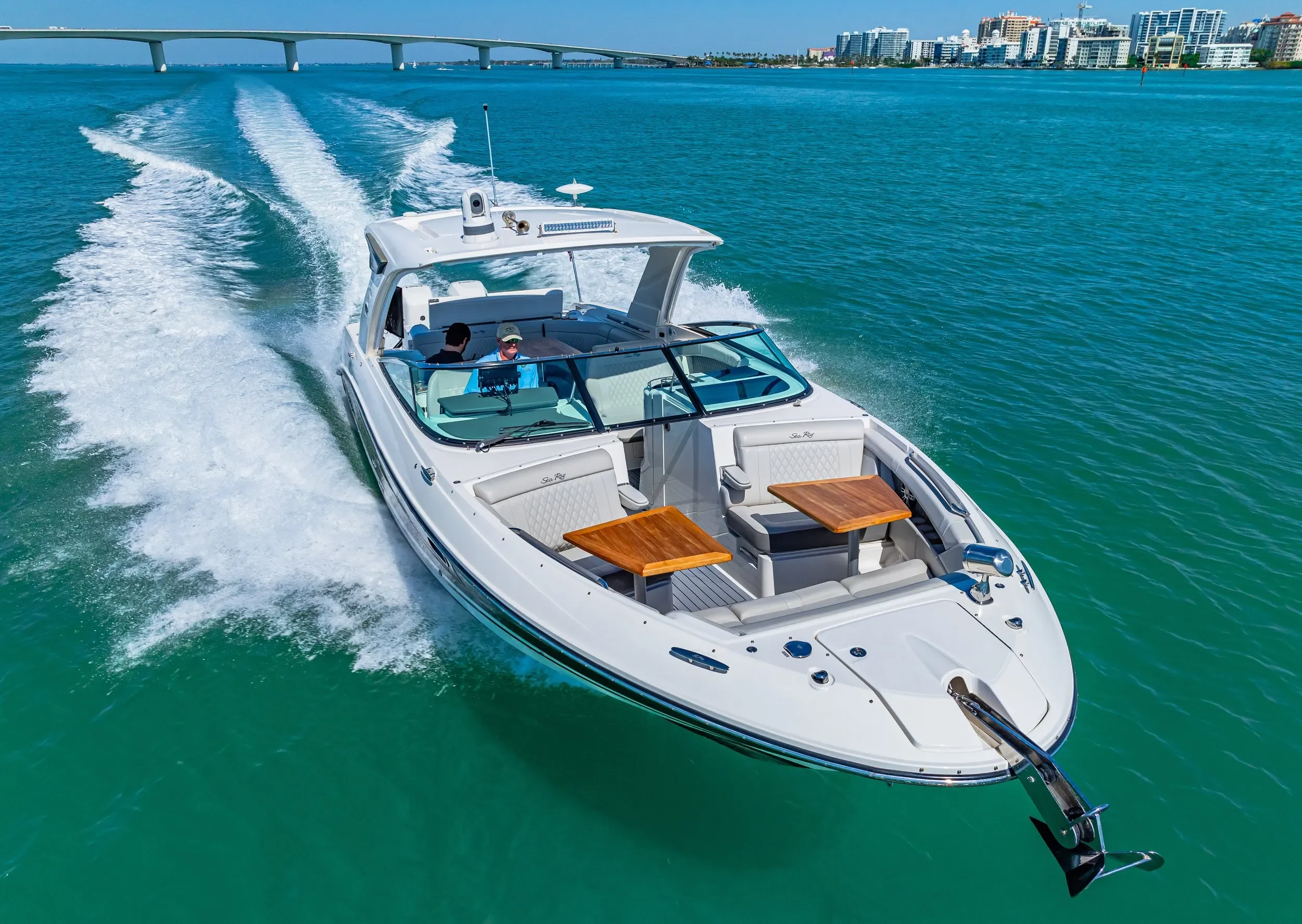 Sail the elegant shoreline of Venice with its old-Florida charm. A refined option for guests wanting a relaxed yet elevated evening on the water.
